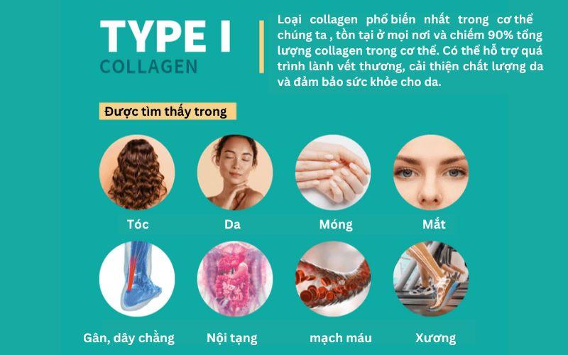 - Collagen Type I: Là loại chính tạo nên độ đàn hồi và mịn màng cho da, cũng như đóng vai trò quan trọng trong xương và khớp.