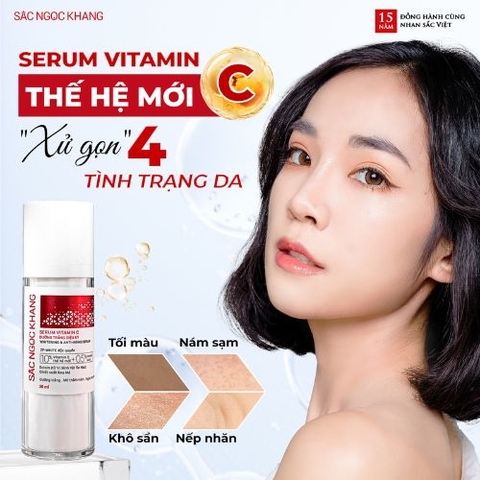Serum Vitamin C Dưỡng Trắng Diệu Kỳ Sắc Ngọc Khang – “chiến binh” không thể thiếu trên hành trình chinh phục làn da sáng mịn hoàn hảo, “tạm biệt” làn da không đều màu, thâm sạm, nám, tàn nhang nhờ công thức độc quyền với 3 tác động mạnh mẽ: