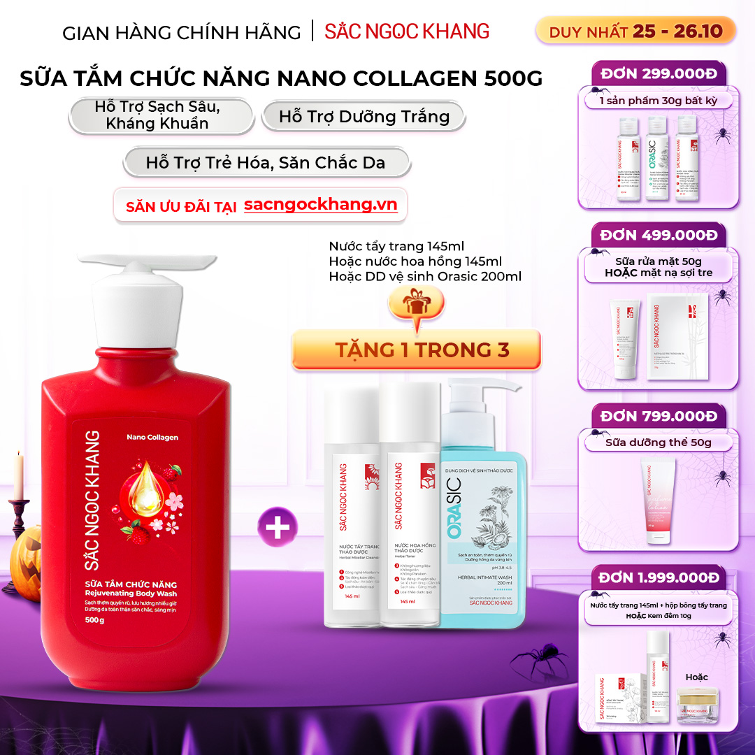 Đừng để làn da của bạn phải chịu “thiệt thòi” thêm nữa! Sữa Tắm Chức Năng Sắc Ngọc Khang sẽ đưa bạn bước vào hành trình chăm sóc da hoàn hảo. Nhờ vào sức mạnh từ công thức độc đáo kết hợp Nano Collagen, chiết xuất Mâm Xôi Đỏ mang đến làn da săn chắc, trắng mịn và tràn đầy sức sống. Đặc biệt, hương nước hoa Cherry Blossom, mang đến mùi hương nhẹ nhàng, quyến rũ, giúp lưu hương dài lâu, làm say mê mọi giác quan, đánh thức từng tế bào.