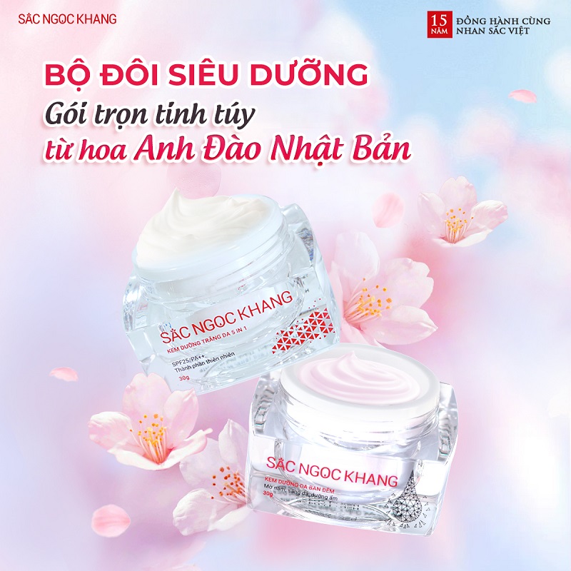 - Kem Dưỡng Da Ban Đêm: Mang trong mình thành phần đắt giá từ những cánh hoa Anh Đào, Kem Đêm trở thành “chiến binh” với khả năng mờ nám bề mặt, dưỡng trắng mịn màng. Hơn thế, siêu phẩm còn được chị em săn đón nhờ công dụng cấp nước cho da suốt đêm, khóa ẩm, dễ dàng đánh thức nền da mướt mịn, căng mọng. Đồng thời ngăn ngừa các dấu hiệu lão hóa, mang đến cho Mẹ một làn da rạng rỡ và Mẹm mượt từ bên trong