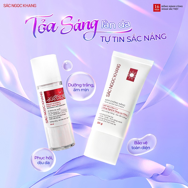 Bộ đôi CỐNG NẮNG - DỊU DA - DƯỠNG TRẮNG nhà Sắc Ngọc Khang chính là lựa chọn thích hợp nhất để giúp Mẹ bảo vệ da đa tầng, dưỡng trắng hồng rạng rỡ.