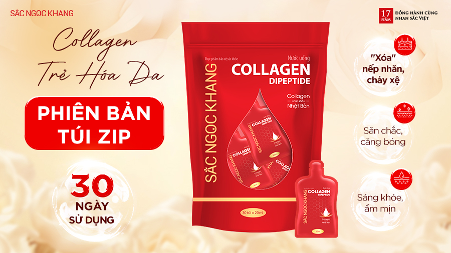 ⇒ Nước uống Collagen Dipeptide Sắc Ngọc Khang phiên bản túi zip là "chân ái" dành cho bạn. Hãy là người đầu tiên sử hữu và cảm nhận sự tiện lợi vượt trội từ phiên bản mới!