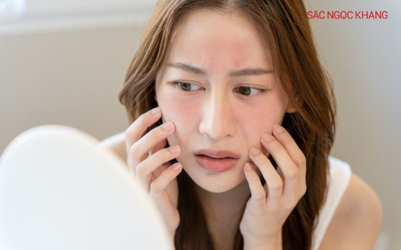 Biểu hiện: Làn da trở nên khô ráp, bong tróc hoặc tiết nhiều dầu hơn. Đối với da nhạy cảm, dễ xuất hiện kích ứng như đỏ rát hoặc mất độ ẩm tự nhiên.