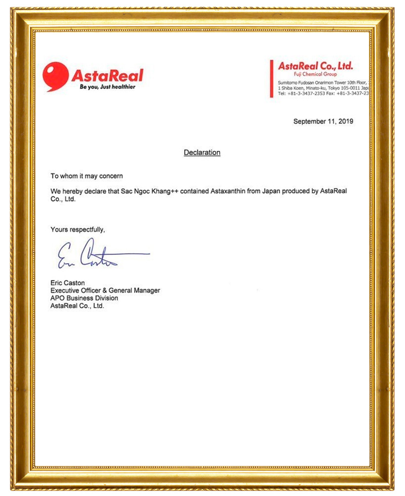- Astaxanthin từ Vi Tảo Lục Nhật Bản được chứng minh có khả năng chống oxy hóa gấp 110 lần so với Vitamin E, gấp 6000 lần so với Vitamin C, cho tác động ức chế quá trình hình thành sắc tố đen, đào thải nám, sạm, tàn nhang, giúp da luôn căng mịn, tràn đầy sức sống. Không những giúp làm đẹp da, Astaxanthin còn giúp ngăn ngừa tác hại của các gốc tự do sản sinh, làm chậm quá trình lão hóa, giúp cơ thể trẻ khỏe. Đặc biệt, Astaxanthin trong Viên uống Sắc Ngọc Khang ++ được nhập khẩu từ Tập đoàn AstaReal Nhật Bản (Tập đoàn TOP đầu thế giới với hơn 70 năm nghiên cứu chuyên sâu và nuôi trồng Astaxanthin tự nhiên).