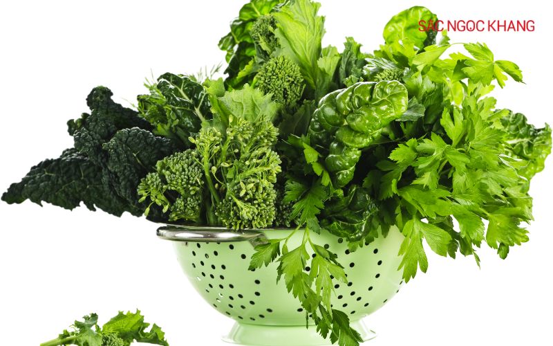 - Các loại rau xanh đậm: Rau bina, cải xoăn... chứa nhiều vitamin C, chất chống oxy hóa và khoáng chất, giúp kích thích sản xuất collagen, làm sáng da và giảm thâm nám.