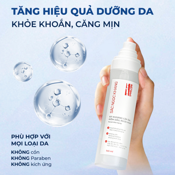 Xịt khoáng dưỡng ẩm là “bảo bối” không thể thiếu trong hành trình chăm sóc da của bất kỳ ai, đặc biệt trong bối cảnh môi trường và thời tiết ngày càng khắc nghiệt. Việc lựa chọn sản phẩm phù hợp, sử dụng đúng cách sẽ giúp làn da bạn luôn tươi trẻ, mịn màng và khỏe mạnh. Trong số những sản phẩm đáng chú ý hiện nay, xịt khoáng dưỡng ẩm Sắc Ngọc Khang nổi bật với thành phần lợi khuẩn đột phá, rau má làm dịu và hyaluronic acid siêu cấp ẩm, chính là sự lựa chọn hoàn hảo để nâng tầm chăm sóc da mỗi ngày.