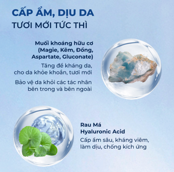 Những loại nước khoáng thiên nhiên như nước suối khoáng, nước từ các suối nước nóng giàu khoáng chất có tác dụng cân bằng da, giảm viêm, phục hồi tổn thương.